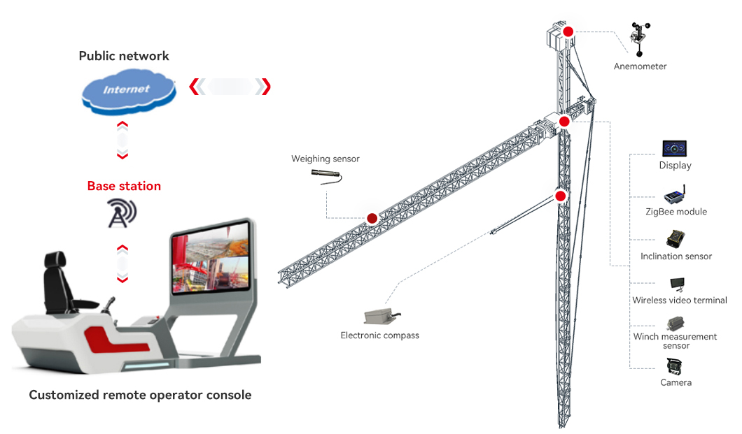 supports independent control of individual machines and networked control of tower cranes, adapting to different construction environments.